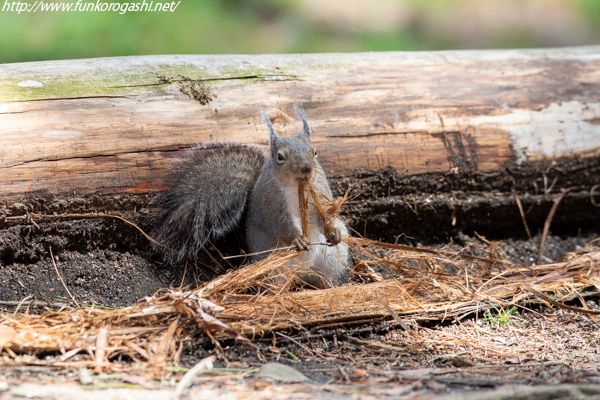 JUGEMテーマ:ニホンリス(ホンドリス) ニホンリスが巣材と格闘していました(笑) 見ていると楽しい〜 スギ?ヒノキ?の皮の内側を倒木から剥がしていている最中で、 口と両手を使い引きちぎろうとしますが、中々ちぎれません。 手ごろな長さにしてから、口に咥えて両手で丸めます。毛糸の玉みたいに。 おそらく巣に持ち帰り、更に細かくして子供のベッドに。 今度動画も撮影してみよう!