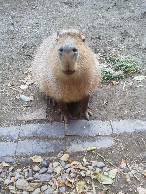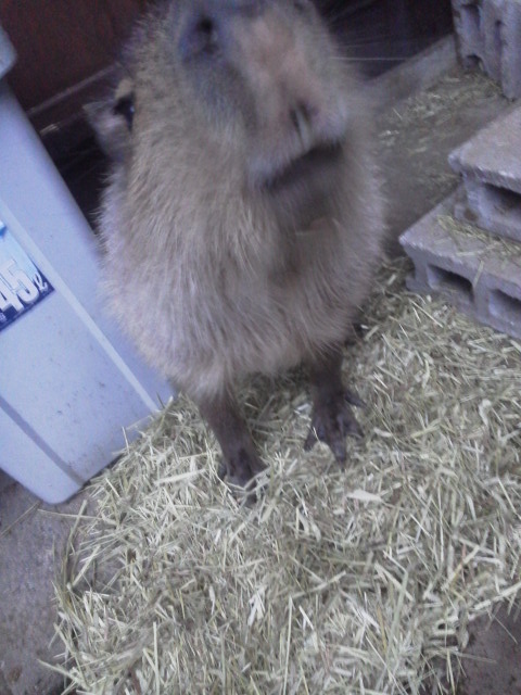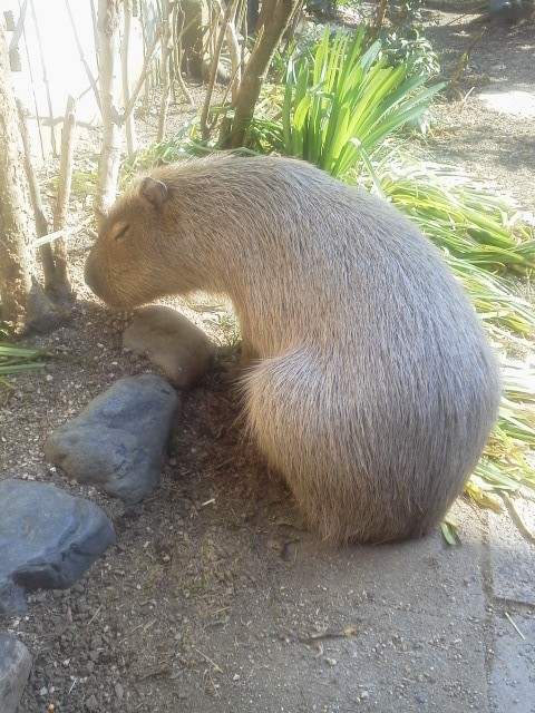 JUGEMテーマ:カピバラ てくてくは元気なんですがね。 だいぶ環境が変わって行き詰まってたので、そのまま引きこもってました。 日中はだいぶあたたかで、ちょうど日向と日陰の境界くらいで寝そべってます。たまたま動いてるところをとったら、だいぶ大きく見えますね。 まだ目の周りが茶色で、もう少しでおとなでしょうか。