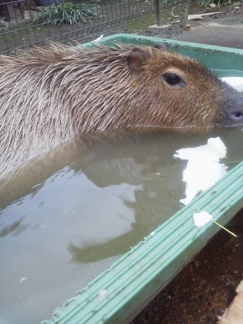 JUGEMテーマ:カピバラ お風呂がせまくて申し訳ないです... 最近は白菜をよく食べます。特別にいちごを浮かせると探してばしゃばしゃします。 おめめぱっちり。