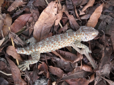トカゲのようだが、手足の指の状態からヤモリの様な種類と思われる。尻尾の方がちぎられていて、このヤモリ、職業訓練を行う校舎を改装中に、上から落ちてきた。 この校舎、長年使われていなくてお化け屋敷のような状態になっていて、改装前はラオス式のお祓い(バーシー)を行ったが、確かに何かが潜んでいるような雰囲気はあった。 このヤモリの大きさは口から尻尾の付け根まで30センチはあり、尻尾が残っていたら50センチ近くあったようだ。 これが上から落ちてきたのは天井に取り付けた3枚羽の扇風機がグルグル回っている時で...