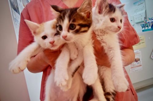 JUGEMテーマ:新しい家族になってくださる方募集中 当会では子猫の引き取りは、しておりません。 ご自分で保護される方に、 飼育方法や動物病院など、 アドバイスを行なっています。 ↑先日、あるお庭で保護された3匹兄妹。 茶白が男の子、あと2匹は女の子。 保護者さん、初めての保護 🔰 当会のアドバイスを受けて、 この子たちを決心をされました✨ 幸せ者の3匹です🐣🍀 ↑横浜の元町で保護。 ビルと...