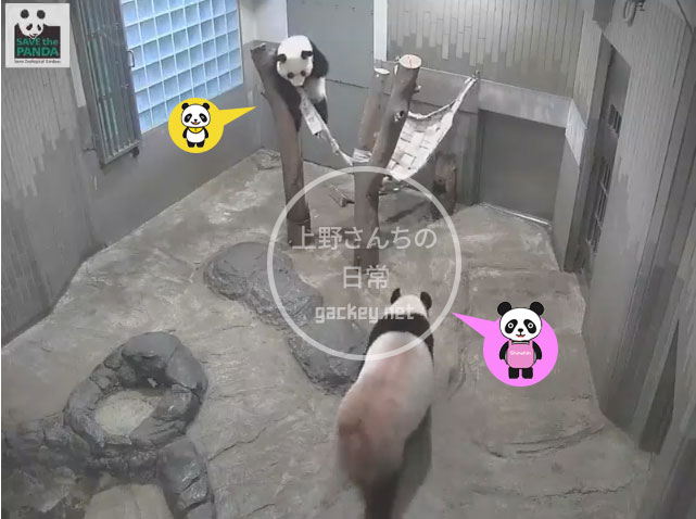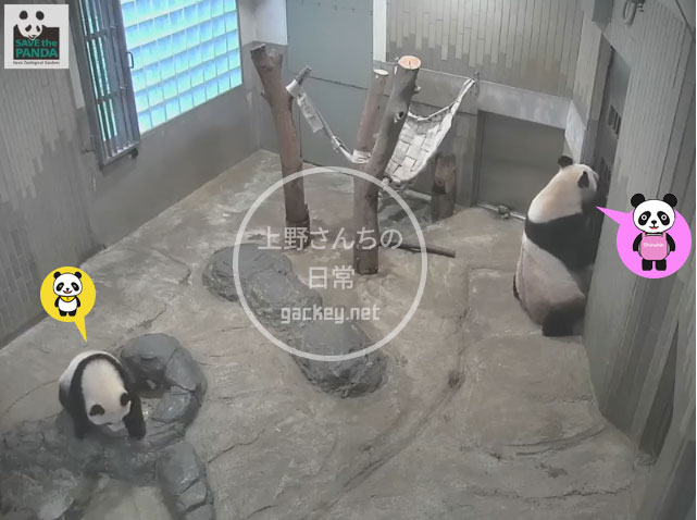 Shin Shin:たまには、かあちゃんもハンモックに乗りたいわ。 Xiang Xiang:ダメ。これあたしのだもん。 ★★★★★★★★★★ Xiang Xiang:絶対ダメ。 Shin Shin:あら、いじわるね。 ★★★★★★★★★★ Shin Shin:じゃあ、乗らないから、腕だけでも。 Xiang Xiang:それならいいよ。 ★★★★★★★★★★ Xiang Xiang:あれっ。かあちゃん、寝ちゃったの? Shin Shin:zzz ★★★★★★★★★★ あれから、3時間! Shin Shin:やっとかたづけ終わったわ。あらっ、ハンモック空いてる。座っちゃおう。 その頃シ...