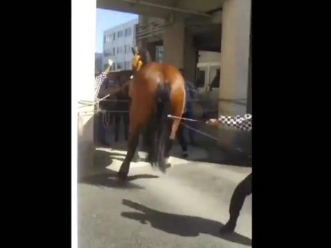熊本市の祭りを撮影した動画に「馬が虐待されているシーンが映っている」として、ネット上で物議を醸している。秋の風物詩として親しまれてきた、藤崎八旛宮の例大祭での出来事。撮影されたのは9月16日の日中とみられる。 動画には、はっぴを着た人が大声を上げながら、馬にムチを振るう姿が収められている。縄で繋がれ、人間たちに取り囲まれている馬。嫌がるようなそぶりを見せたあと、後ろ足を蹴り上げると、「ヒョー」「カッコ良かった」など周囲の人たちから大きな歓声があがった。 呼び物の「飾り馬」 この例大祭は...