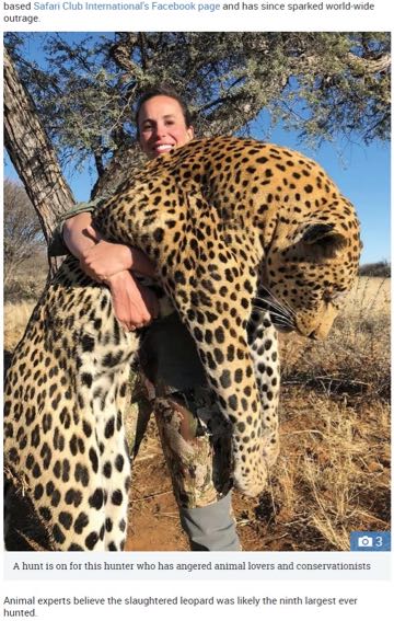 画像は『The Sun 2018年9月18日付「‘FIND THIS B***H’ Female big game hunter slammed by celebrities and animal rights activists after proudly hugging slaughtered leopard」』のスクリーンショット 数日前に子供を連れて家族で狩猟をするのが楽しいと発言した米女性がネット上で物議を醸していたが、今回もまた女性ハンターが投稿した1枚の写真が炎上した。自らが仕留めた大きな雄のヒョウを抱え上げ笑顔でポーズを取るその女性の行為に、多くのセレブや動物愛護活動家らが非難の声をあげている。『The Sun』などが伝えた...
