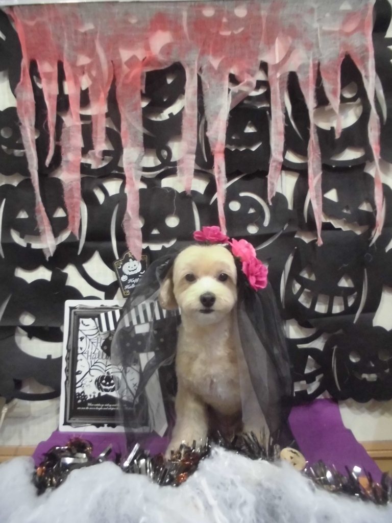 JUGEMテーマ:MIX犬 バッドマンラブちゃん、決め顔がバッチリ🦇 花飾りもとってもお似合いだよ🎃 また、次回もお待ちしています。