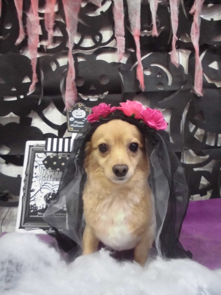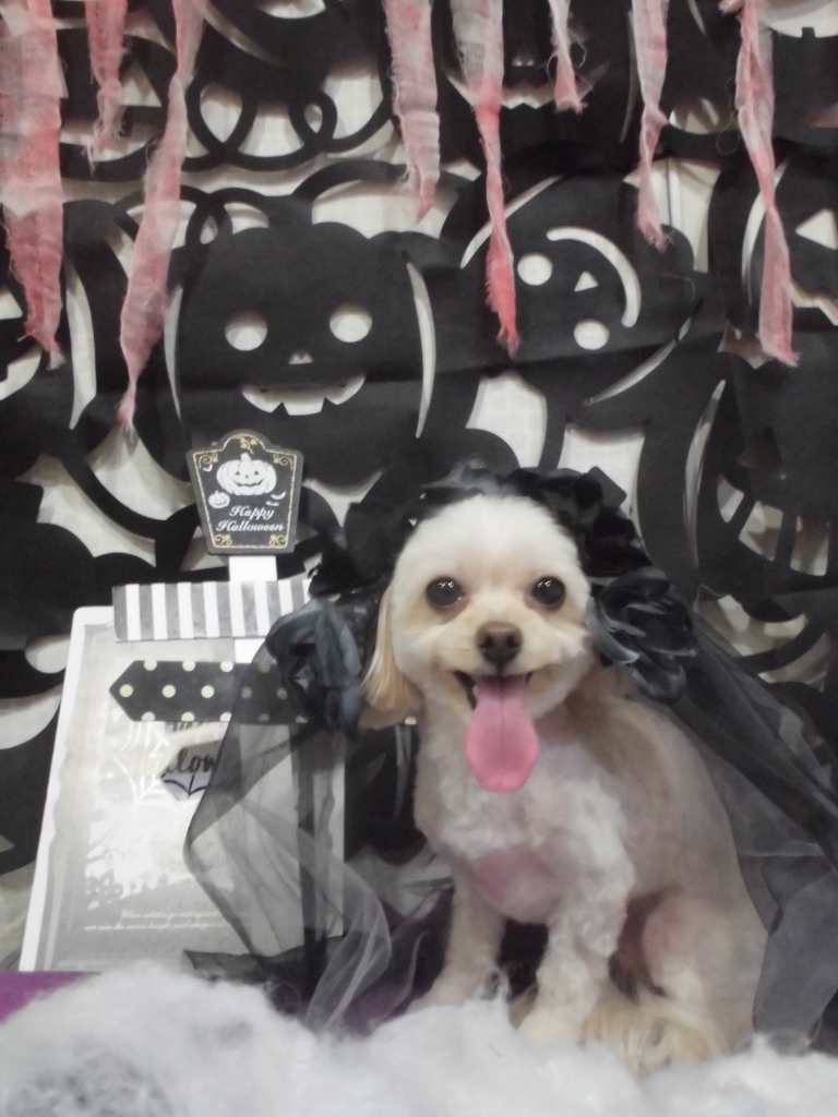 JUGEMテーマ:MIX犬 なんとも可愛い笑顔のバッドマンチャロちゃん🦇 レーシーな花飾りもニコニコ仮装になりました🎃 また、次回もお待ちしています。