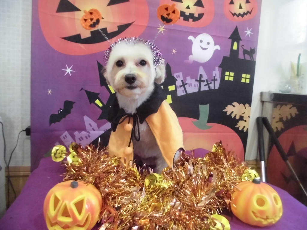 JUGEMテーマ:MIX犬 今日から、ハロウィンプチ仮装始まりまーす🎃 ピンクレディー風のハロウィンカチューシャ&ウサギ仮面で可愛くなりました。 また、次回お待ちしています。