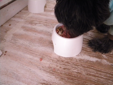今日はなんとか食欲があるみたいだ。 無い!といったらほんとに無くて、 食べない 何も。 好きなパンをなめて終わり。 今日は朝から、クルミパン。 イヌ缶。 そしてきのう出なくて心配していたウンチが出て、 お昼にわたしのラーメン。 茹でてお水で洗った麺をつるつると。 そしてお皿に残っていたイヌ缶食べつくして、 おやつに サチコのカリカリを。 けっこう食べたね。 食べ...