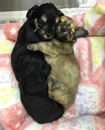 JUGEMテーマ:MIX犬 ぎゅーってしてんのぉ なかよちやね〜 マルチーズとミニチュアダックスフンドのミックス犬兄弟 一見2匹に見えるけど よぉ〜く見ると3匹 (1/27生まれ ミックス犬)