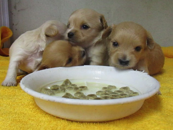 JUGEMテーマ:MIX犬 ミルクごはん食べてみる ん〜〜・・・ お皿ばっか舐めてるし お皿かたむけたるからみんな食べて 『ア〜ン』 あ、ちょっと!ちょっと それは隣の子の耳だよ 『あむっ』 ぷぷぷぷっ めっちゃかわええ まちがえちゃったね笑 きみたちもミルク飲んでご...
