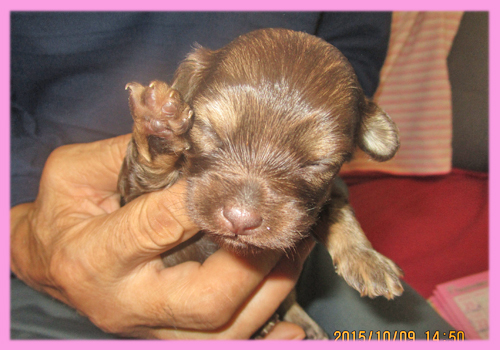 JUGEMテーマ:MIX犬9月27日に生まれたばかりチワプーのご紹介ですチョコレート&タンの女の子ですパパ犬: ロングコートチワワ フォーン 2.2kgママ犬: トイプードル ブリンドルまだ目も開かない赤ちゃんですこれからの成長が楽しみです一日ごとに大きくなる子犬をぜひ一度見学にいらっしゃいませんか?詳細情報など、どうぞお気軽にお問い合わせくださいミックス犬の子犬情報は http://www.angelwan.com/?cat=108子犬の情報は毎日のように変わります 可愛い子はすぐに飼い主様が決まってしまうので気になる方は、すぐ...