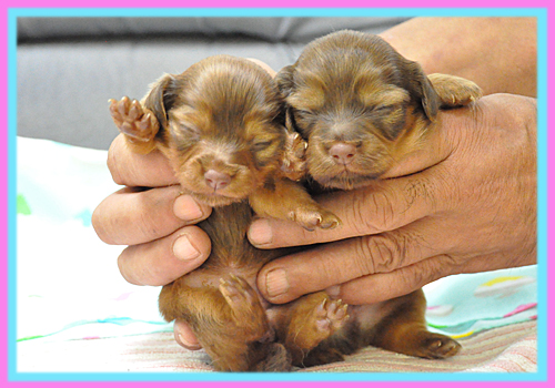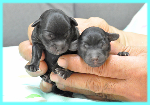 JUGEMテーマ:MIX犬6月28日生まれチワワxダックスフンド=チワックスのご紹介ですチョコレートタンの男の子と女の子の兄妹ですパパ: チワワ 2.2kgママ: ダックスフンド チョコタン 3.2kgまだ生まれたばかりあんよも人の指先くらいの大きさで目もあかない赤ちゃんですつやつやのチョコレート色の被毛がとってもきれいこれからの成長が楽しみですぜひ実際の子犬たちを見にいらしてくださいミックス犬の子犬情報は http://www.angelwan.com/?cat=108子犬の情報は毎日のように変わります 可愛い子はすぐに飼い主様が決ま...