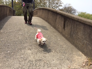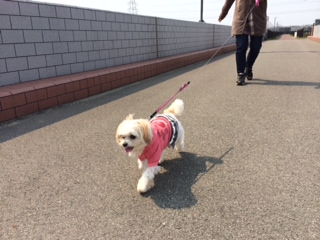 日曜日。いいお天気だったのでわっふるを連れておでかけ。 最初は久宝寺緑地へ行こうとしたけど、なんかめちゃくちゃ渋滞してて、私もわっふるもそしてパトラッシュまでもイライラしはじめたので、結局いつもよく行っている福万寺運動公園へ。 もうそろそろわっふるのお洋服も冬物から春物へ衣替えしないとね。 そしてこの日もわっふるのテンションはマックス! 嬉しそうにダッシュ! この日はリードもはずしてみました。 ビビリのわっふる、はじめは私やパトラッシュから離れずに歩いてたけど、だんだん慣...