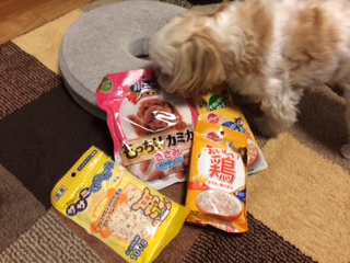 ちぃ母よりわっふるへのプレゼント。 ダイエット中のわっふるのためにカロリーオフのおやつやふりかけが入ってました。 いちばんニオイをクンクンしていた「もっちりカミカミささみ」をあげてみたら、ものすごく嬉しそうに食べました。 どうもありがとう JUGEMテーマ:MIX犬