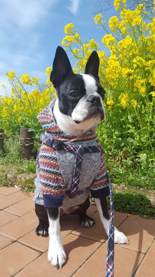 JUGEMテーマ:ボストンテリア すっごい素敵なお写真 この菜の花のお写真は今年の4月頃だそうです お名前を聞きそびれてしまって・・・ごめんなさい。 きれいな女の子 とっても似合っていて可愛いです! 美しいお写真ありがとうございました きつそうかな?ってことでしたが、そうかなぁ? 丁度良さそうにも見えます。 好みですよね。ぴったりパツパツ気味で着せたいか、ゆったりがいいか。 脱ぎ着はゆったりのほうが良いと思いますが、あんまり大きめだと 男の...