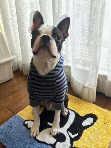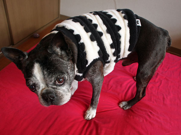 JUGEMテーマ ボストンテリアのボク君 なんて綺麗なボストンさん〜(*^_^*) 敷いているマットが気になるなぁー サイズもぴったりですね!良くお似合いです。 可愛いなぁ〜気に入って頂けてとっても嬉しいです。 お写真ありがとうございました!感謝しています! 掲載が遅くなり申し訳ございません・・・ なんでもモタモタな私ですが、ご注文のオヨフク大急ぎで作っています。 早くしないと寒くなっちゃう〜 皆様、懲りずに可愛い我が子のお写真送ってくださいませ〜