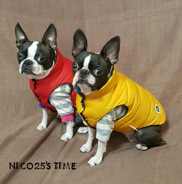 犬服 NICO25'S TIMEです。 いつもありがとうございます。 朝晩、だいぶ冷え込む季節になってまいりました。 お風邪などひかれていないでしょうか? ところで、お知らせです。 今シーズンもリアルダウンベストを販売いたします。 リアルダウンの値上げ、そして、今回はプリントを入れていることもあり昨シーズンよりもお値段は上がっております。 ですが、満足いただける仕上がりになっていると思います!! デニムニットにカレッヂプリントを入れました。 フロッキープリント...