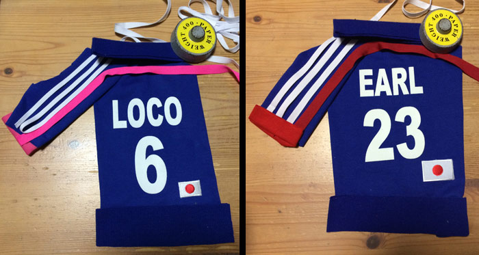 JUGEMテーマ:ボストンテリアサッカーTシャツです!生地は防蚊の生地で、これからの季節安心です。お好きなお名前と数字を入れさせていただきます。肩からお袖にかけて赤又はピンクのラインを入れているんですが、とにかく可愛い!すごくいい感じに出来ました!これを着せてW杯を一緒に応援しましょー!袖口は赤です。なでしこジャパンはピンクです。お求めのご予定の方はナンバーと文字を考えておいてくださいね☆文字数が多いと、文字が小さくなってしまいますのである程度短めをお勧めいたします。candy☆dog↑是非見に来てくだ...