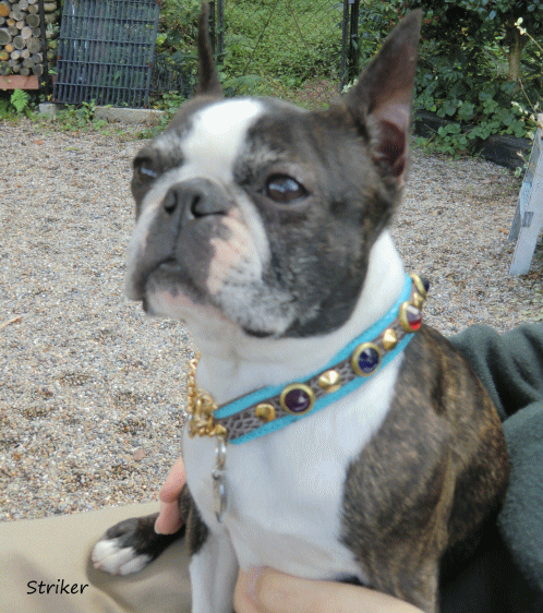 JUGEMテーマ:ボストンテリア 今日、3回目の投稿です! 去年からお写真を頂いていたのにUPするのが遅くなって 申し訳ございません。 ボストンテリアのストライカーくんです! かっこいいブリンドルのボストンテリアですね!(*^_^*) かっこいいはずです! なんとストライカーくんはボストンテリアで日本初のアメリカン・ブロンズ・グランドチャンピオンなんです!! 凛とした表情!素敵です♪ ピンと引き締まったボディに綺麗に立ち上がった耳、 かっこいいストライカーくんのハーフチョークはオリジナルです...
