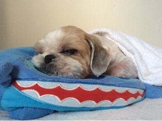 JUGEMテーマ:シーズー 台風が日本海を移動中ですね 京都は朝から時折ぶきみな風が吹いていました 朝起きた時の寝ぐせが笑えるようになってきたくぅちゃん そろそろお顔カットしなくちゃね サロンに電話したら今からどうぞ〜って事で行って来ました 今回はいつもよりちょっと丸顔に仕上がりましたョ バリカン後が気になるのか爪でバリバリするんだけど、 切りたての爪だとすぐ皮膚が傷ついちゃう お洋服とタオルで梱包したけど少し血がにじんじゃいました お家に帰ってから、不気味な風がどんどん強くなる...