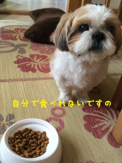 JUGEMテーマ:シーズー 今日は朝から私がお出掛けする気配を感じてちょっと 甘えっ子モードのくぅちゃんでした 朝ごはんをほんの少し食べたあと テーブルの横でじーーーーーっつと待ってます。 目の前にお皿をおいたのだけど 自分で食べれないアピール中 目の前に近づけても見えないふり あっ 宇宙人ですの そんなボケにはごまかされませーん だっていらないですのっ そんなこと言わないで食べてくださいなっ と口に入れたら 脱走してしまった… 無理に食べてもらわなくても...
