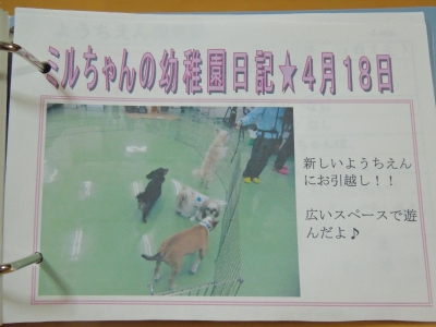 JUGEMテーマ:シーズー ミルのようちえんが新しい施設に移転しました。 4月後半からは新施設に通っています 新施設は教室も広々 室内でも思いきり運動できます 玄関前で先生と 新施設移転のお祝いの花がたくさん飾ってありますね。 トリミングルームやドッグカフェも併設されています。 誰でも気軽に利用できるそうです ようちえんでミルの名刺を作ってくれました。 この写真は初ようちえんの日の思い出の写真です。 枚数も多く、名刺ケースもつけて...
