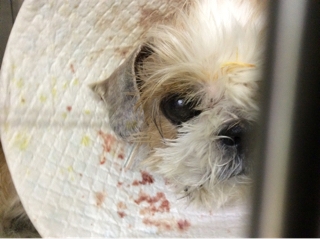JUGEMテーマ:シーズー くうちゃん元気に退院してきました 心配した傷口の化膿もなく、戻って来ましたョ この写真は金曜日に面会に行った時のもの。 くぅちゃん、鳴きつづけて(吠えるんじゃなくてクーンって泣くの) 痛々しくて、帰れなくなっちゃって、もう面会は無理かも…って思ってたら 土曜日に『今日傷口のドレーンをはずして縫合しました。月曜日退院できますよ』って電話がありました 帰り、クレートに入れようと思ったらカラ―が邪魔で入れなかったので 助手席に...