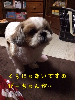 JUGEMテーマ:シーズー ぴーちゃんが寝ころんでいるわざわざそばにいって 丸まっているくぅちゃん せまいと思うんだけど 今日はくぅちゃんのお誕生日なの 元気にお誕生日をむかえました 誕生日のプレゼントは暖かいお洋服 息が白くなる日のお散歩にも平気だよ お帽子をかぶっちゃうとちょっと視界が悪い見たい ハッチ知ってますかぴーちゃんもスカパ―で見て知ってますョ 寅のつもりは全然なかったんだけど、何回も「トラにはみえへんわぁ~」って言うの あと、ボーロ大好きなくぅちゃんに沢山のボー...