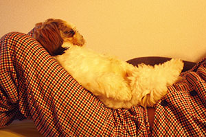 最近は仕事で魚の絵をたくさん描きました。地味な魚を楽しそうに描くのに難しかったけどなんとか描けた!印刷上がりが楽しみです。 そして少し前のまる。 昼間遊び疲れたのか、夜にこの体勢で相方さんの太ももの上で人間のように寝ます。 私のだと長さが足りないのか、頭がうまく乗らないらしいー。 JUGEMテーマ:シーズー