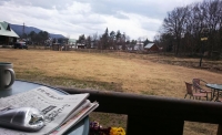 JUGEMテーマ:ドッグラン おはようございます。 今日は雲の間からお日様が覗いたり隠れたり、 風はまだ冷たいけど、暖かくなる予報です。 わんこの遊び場、ドッグランのお話です。 雪解け進む信州白馬村、冬の間に外していたフェンスを、張り終わりました。 出入り口も完成、ドッグランオープンです。(白馬村は条例でノーリード禁止です) 注意:クリックすると大きな写真です カフェ『わんこ』のデッキ席から、写真を撮りました。 コテージ前庭の芝生の向こうにドッグランがあります。 新聞の上辺りに白いシャツの...