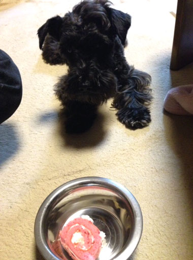 中野区に暮すミニチュアシュナウザーのライ君が2歳を迎えました。 お孫さんと仲良しでお散歩の時にはお孫さんのベビーカーを引っ張って歩くライ君だそうです 「ケーキ、ウマウマでした」 JUGEMテーマ:ミニチュアシュナウザー