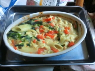 JUGEMテーマ:ミニチュアシュナウザー今夜は、我が家の夕飯はグラタンでした。 奈々ちゃんにもグラタン作れないかな〜と…ネットで調べてみたらありました。なので、さっそく作りました。 使った具材↓にんじん(小)5本ほうれん草(冷凍)適量ペンネ10本高野豆腐 1/2個刺身用ほたて 1個豆乳、片栗粉、水 適量作り方*にんじん、ほうれん草、ペンネ、お湯で戻し乱切りした高野豆腐(@)、刺身用ほたてをグツグツ煮ます。@お湯で戻した高野豆腐は、マッシャー等でまな板に押しつける様にしっかり水を切って下さい。また、お...