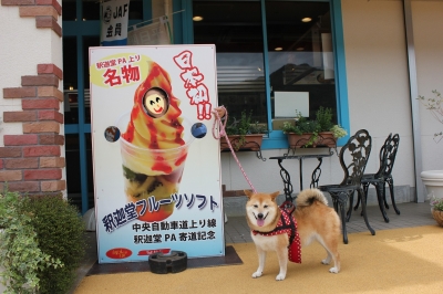 白馬まで、車で5〜6時間掛かるので、途中、SAとPAで休憩です。 ももにも、このソフトをおすそ分けです。 大雨警報の出る中、幸い天候に恵まれました。 草の海とももちゃん。 ドッグランは貸切状態でした。