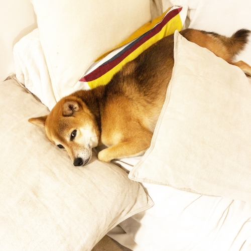 ひえー。 手を出したり、体を向けてもなく ただダンナさんがそばを通っただけで すかさずお腹を出して撫ででと アピールしてる・・・。 ペット わんこ 柴犬