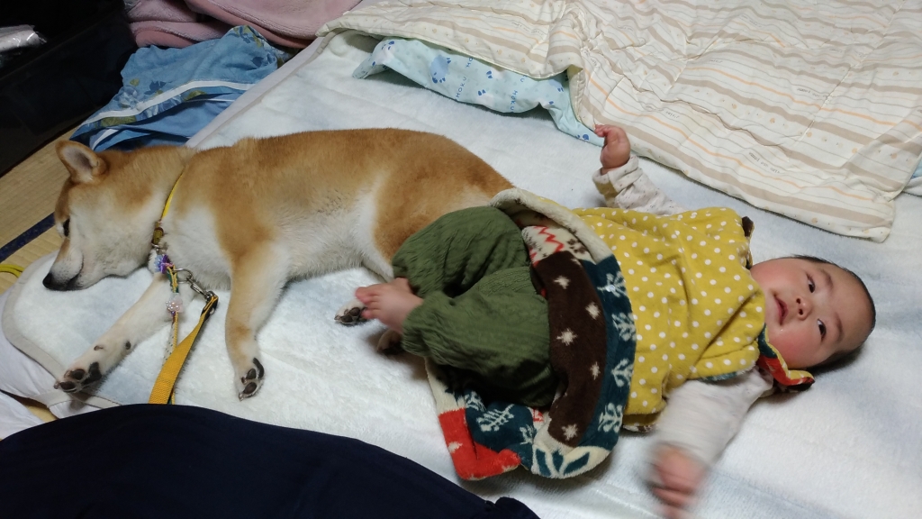 JUGEMテーマ:柴犬 たまの話のようで子供の話です。 まだ6ヶ月に満たないくらいの月齢で、最近寝返りを自在にできるようになって楽しんでいます。 その中でたまを自由にさせると、引っかかれたりしないかなという心配があったのですが、一緒になって寝てました 子供のほうはちゃんと見えてないんだとは思いますが、目があってる風なのが可愛くてぱしゃり。 そして子供が体をひねって動きが出ました。 たまが変わらずリラックスしてくれているのがありがたいです。 こ...