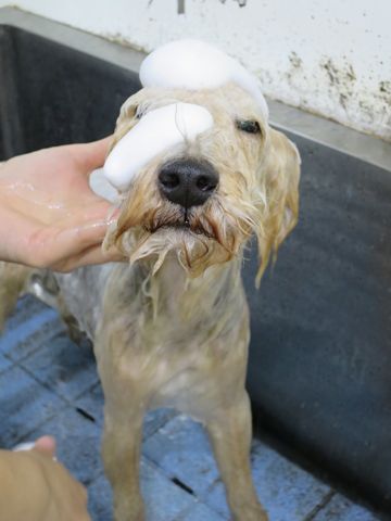 うひょー うひょー うひょー ハーブパックで大フィーバー ビションフリーゼちゃん / Moco.Tです 生後約6ヶ月半 幼いということもありますが、まだ被毛がふにゃふわ これからどう育つだろう… 期待する今日この頃です 【 trimming note 】 顔 :丸くビション ボディ:13mm 脚 :体に合わせる 腹バリ:する 尾 :× ヒ ゲ:ふっくら 耳 : その他: ハーブパック; 毛穴に詰まった脂・汚れを落とします!! デリケートな皮膚のケアに効果を発揮!...