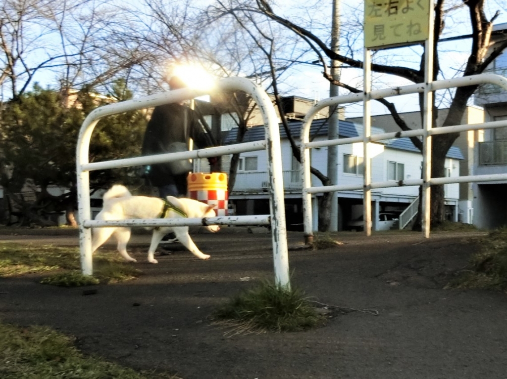 JUGEMテーマ:わんこ JUGEMテーマ:柴犬 JUGEMテーマ:ビーグル 気持ちの良い青空に朝陽 でも今朝は寒かった ⤵ 「ろびん冬のコートなんか着て そんなに寒いの?」と云いたげな はく君 そうなんです ろびんは寒がりなんです お家を出る時の外気温は3℃だったので冬コートです いちちゃんのお散歩の終盤で出会ってご挨拶しました いちちゃん 今朝は最初のおもちゃのフリスビ...