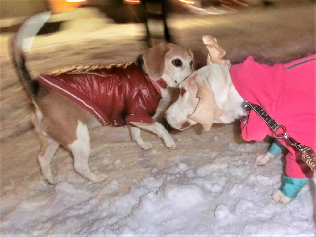 JUGEMテーマ:わんこ JUGEMテーマ:柴犬 JUGEMテーマ:ビーグル 今朝はのんびり10時近くにお散歩に出ました フワフワの雪が10?以上積もっていましたが 風も無く 気持ちの良い朝のお散歩出来ましたよ ♬ まくら木公園の山桜の下の写真を撮って 公園を出ようとしたら 初めましてのお友達に会えました シュナウザーとダックスフンドのミックス犬 2才の??? 性別うかがうの忘れちゃいました ⤵ ...