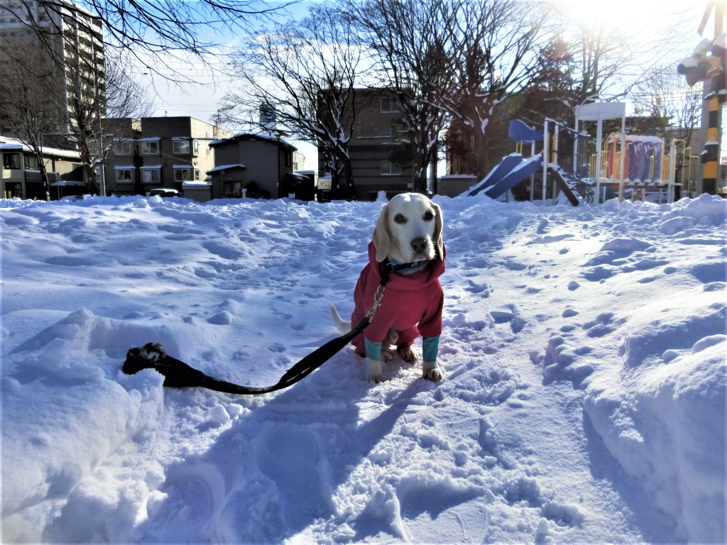 JUGEMテーマ:わんこ JUGEMテーマ:柴犬 JUGEMテーマ:ビーグル 何時も今朝の一枚を撮る時にリードフックにしている まくら木公園の入り口のポイント切り替えは辛うじて頭が出ていました 公園の近所におお住まいの方達が公園の中に雪を捨てる通路に しているので 昨日沢山雪が降ったにもかかわらず何とか 頭だけ出ていたようです 今朝もはく君達と一緒のお散歩時間には出かけられず ろびん一人の寂しいお散歩でしたが めずらしく右コ...