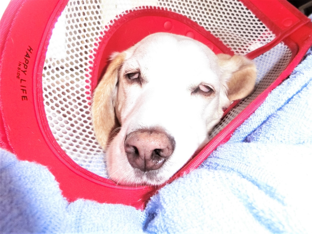 JUGEMテーマ:わんこ JUGEMテーマ:柴犬 JUGEMテーマ:ビーグル 今朝も何時もの時間のお散歩は取りやめました まだ傷口が乾ききっていない様なので… ろびんはあきらめて面白いお顔でまた寝始めました (笑) 神経質ではないろびんママが こんなに気に掛けるのには訳があります 4, 5年前にろびんの耳が裂けて縫合すると云う事故がありました それもやはり夏でした 暑さも重なったのでしょうが術後 耳を頭ごとおおって包帯でグルグル巻きでい...