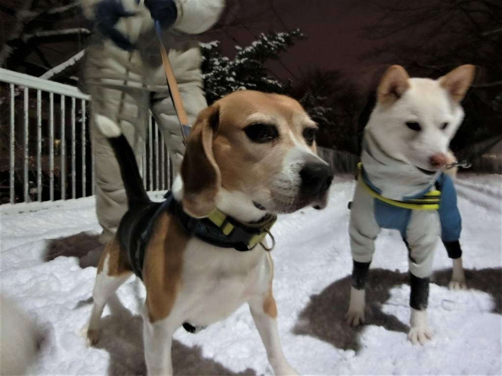 JUGEMテーマ:わんこ JUGEMテーマ:ペット JUGEMテーマ:ビーグル お散歩道に入るとワトソンとはく君がご挨拶をしていました ♬ 毎朝「ワトソンと会えるといいね!」とお話しながらお家を出て来る ろびん 嬉しい嬉しい2匹のご挨拶です ♡ 熱心な2匹のご挨拶にチョット」あきれ顔のはく君 ワトソン また会おうね!とお別れしました 雪が積もったの...