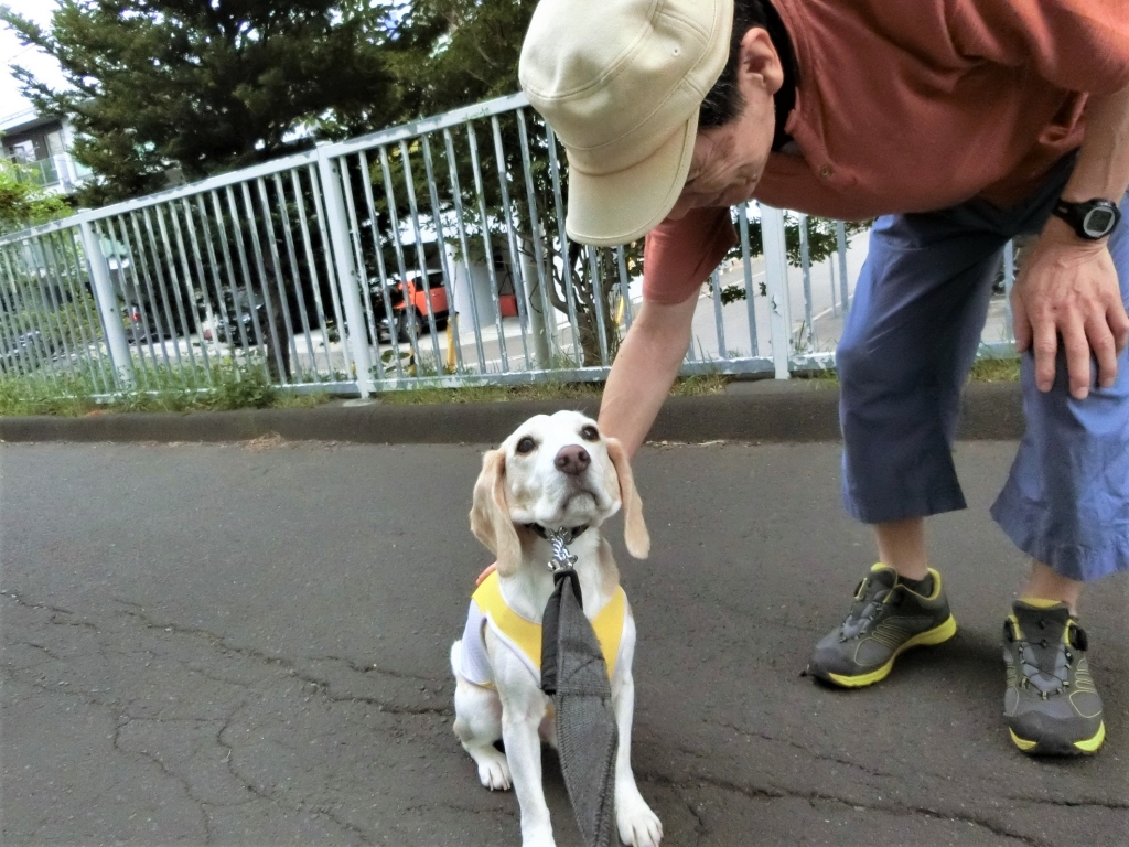 JUGEMテーマ:わんこ JUGEMテーマ:ペット JUGEMテーマ:ビーグル 今朝はお散歩をスタートとさせて直ぐに 毎朝ご挨拶をさせて頂く ウオーキングのおじちゃまに「ありがとうございます」して出発しようとすると 「ボク 行きたくない!」と頑張り おじちゃまに「行っといで!」と 励まされました 後ろを振り向くと はく君も「歩きたくない!」とブレーキを かけていましたが わんこ大好きのおばちゃまに励まされて...