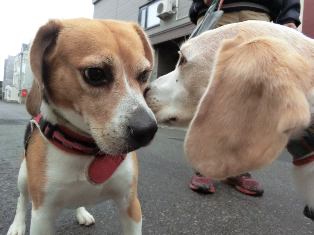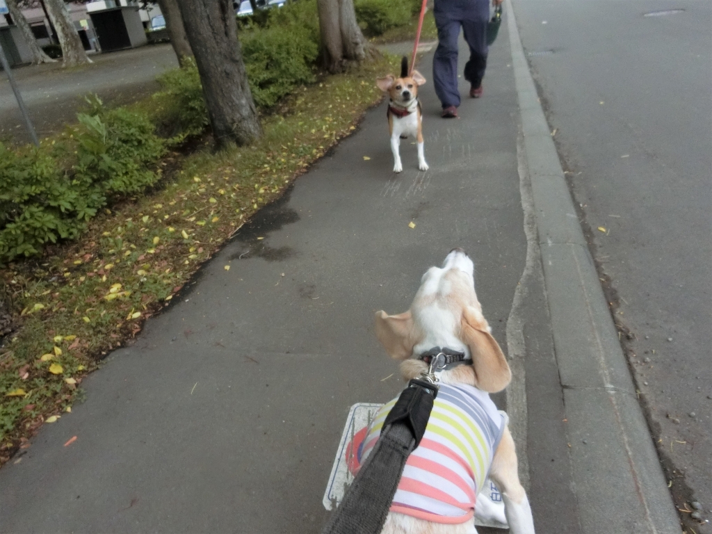 JUGEMテーマ:わんこ JUGEMテーマ:ペット JUGEMテーマ:ビーグル 2日間の雨降りでお散歩に出られなかったろびん 公園前でワトソンに会えて大はしゃぎ ♪ 興奮しすぎて体当たり あすかと違いワトソンはお相撲遊びが苦手です だいぶ迷惑そうでした (笑) ろびんが落ち着いたところでご挨拶してもらいました ウキウキお散歩に出て来たのにナツがいないせいか 「...