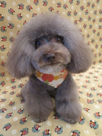 もういくつねると お正月 お正月には 凧(たこ)あげて こまをまわして 遊びましょう はやく来い来い お正月 もういくつねると お正月 お正月には まりついて おいばねついて 遊びましょう はやく来い来い お正月 トイ・プードルのブラウンちゃん / Sally、素敵 お〜しょ〜お〜が〜つ〜 トリミングモデル とっても素敵なんで、入口ガラス扉にトリミングモデル写真として飾らさせていただきました 【 trimming note 】 顔 :目の上、後頭部 すっきり小さめ...