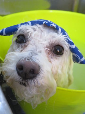 あははん と、温泉で極楽気分からのトリミング ビションフリーゼのおんなのこちゃん / Komugi、素敵にキマってます ビションフリーゼのおんなのこちゃん / Komugiは3週間に1回のペースでトリミングをされます 定期的なトリミング&日頃からのケアが、美しさと健康を作ります 【 trimming note 】 顔 :目の周り短く 丸く ボディ:10mm 脚 :体に合わせる 腹バリ:する 尾 :× ヒ ゲ:口に入る毛短く 耳 : その他: リピート割引 トリミングご...