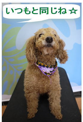 こんにちは山田です 今日トリミングしたわんこ トイプードルのそらくん トリミング後 体は8ミリです お顔はベアカットでお口まわりは前回よりスッキリカットしました 尾はポンポンで、お耳は顎のラインでカットしました ファーメイクEXシャンプー&トリートメント+スプレーを使用しました (有)A HAPPY DOG LIFE JUGEMテーマ:トリミング