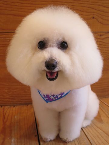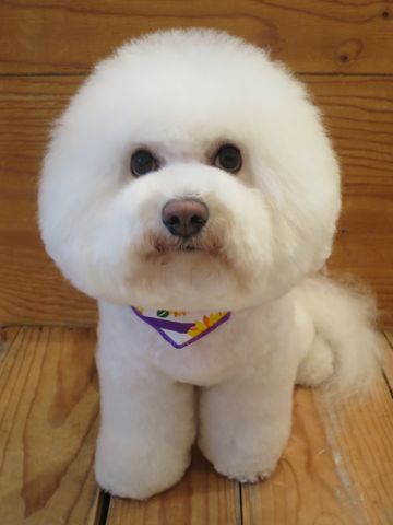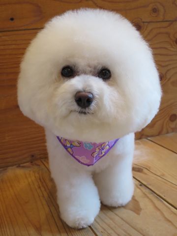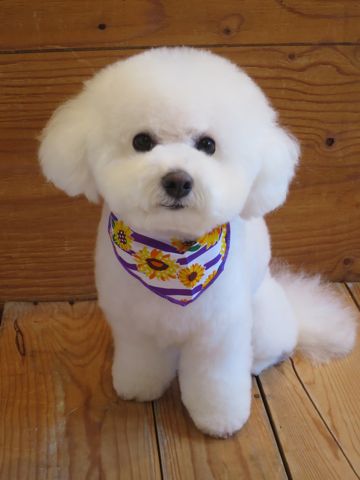 Cute とってもCuteなビションちゃん / Kuma.Y ビションちゃん / Kuma.Yは2週間に1回のペースでトリミングをされます 定期的なトリミング、日頃からのケアが美しさと健康を作ります 今日はカットコースの日 バンダナでおめかし んっふふ〜ん 【 trimming note 】 顔 :目頭のみカット ボディ:10mm 脚 :体に合わせる 足先ベタ足に (スヌーピー風) 腹バリ:する 尾 :背負った時に 小さく扇形 ヒ ゲ:口に入る毛短く 耳 :× その他: ※ 顔は目頭...