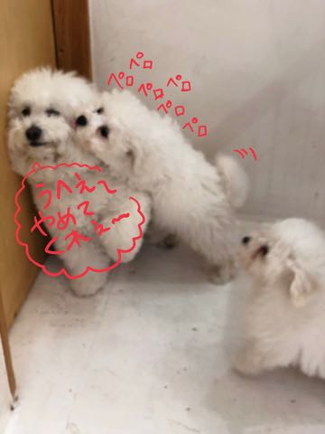 どったんばったん どったんばったん どったんばったん どったんばったん ビションフリーゼのこいぬちゃん姉弟、やり合ってます。 倒し倒され。 噛んで噛まれて。 このような行為を見て、「大丈夫なの?」と思う方もいるかと思いますが、この行為はとても大事なことなんです。 犬は幼い頃にこうして他の犬と遊ぶこと、触れ合うこと、倒したり倒されたり、噛んだり噛まれたりすることでコミュニケーションの取り方や力の加減を学びます。 ビションフリーゼのこいぬちゃん姉弟もこうして遊びな...