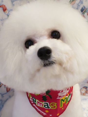 Merry Christmas Merry Christmas ビションフリーゼのおんなのこちゃん / Luana、ふわふわしろしろクリスマス Merry Christmas 【 trimming note 】 顔 :目の周りだけ短く 丸くビション ボディ:キ甲から16mm &シザー (スロープ作る) 脚 :16mm荒刈り &シザーで揃え 腹バリ:する 尾 :× ヒ ゲ:短く 丸く 耳 : その他: ナノバブルオゾンシャワー オゾンナノバブル(オゾンの超微細気泡)により余分な皮脂を分解・洗浄し...