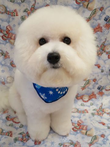 Merry Christmas Merry Christmas 生後約9ヶ月のビションフリーゼのおとこのこくん / Ten、いい感じにまるくなってきました まるるるる〜 トリミングモデル とっても素敵なんで入口ガラス扉にトリミングモデル写真として飾らさせていただきました 【 trimming note 】 顔 :目の周り短く ビションにする ボディ:16mm 脚 :16mm荒刈り &シザーで揃え 腹バリ:する 尾 :× ヒ ゲ:口に入る毛短く 耳 : その他: リピート割引 トリミングご利...